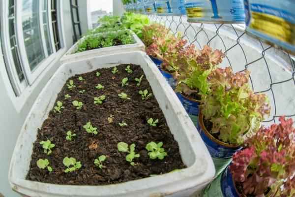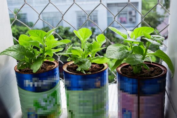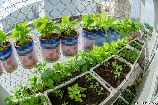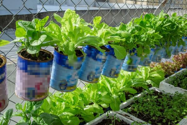 Vì diện tích quá nhỏ, ông bố 25 tuổi phải suy nghĩ rất nhiều mới có được cách phù hợp để trồng được nhiều rau nhất. Hiện trong vườn có 60 hộp sữa, 12 thùng xốp.
