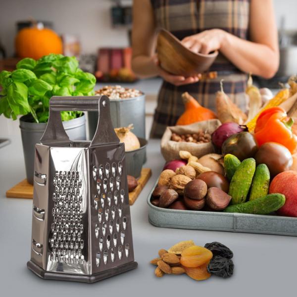 Sản phẩm được thiết kế hình tháp với 6 mặt đa năng, mỗi mặt tương ứng với một loại dao bào có kích cỡ khác nhau. Với chiếc tháp này, bạn chỉ cần xoay nhẹ là dễ dàng chọn lựa kiểu dao phù hợp với các loại củ quả cần xử lý. Toàn bộ sản phẩm được làm bằng thép không gỉ sáng bóng, bền đẹp, lưỡi dao cực kỳ sắc bén. Nhờ vậy bạn có thể thao tác thật nhanh, hơn nữa, phần tay cầm cũng giúp bạn cố định tháp vững chắc hơn khi sử dụng. Sản phẩm có kích thước 12.5 x 11 x 23cm. Giá tham khảo: 350.000 đồng.