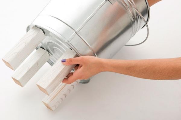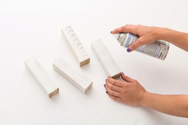 Dùng sơn xịt các chân ghế và để khô. Sau đó gắn 4 chân ghế vào đáy thùng bằng cách dùng đinh vít bắt qua 4 lỗ vừa khoan.