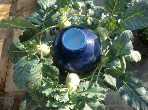 Su hào "mọc lên" từ bình nước lọc, tiết kiệm rất nhiều diện tích so với việc trồng trong luống, khay đất bình thường