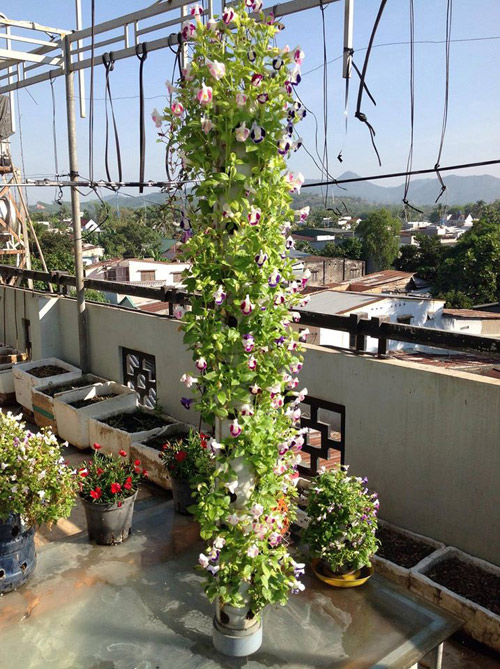 Tháp rau rất sáng tạo trồng xung quanh chiếc ống nước cỡ lớn
