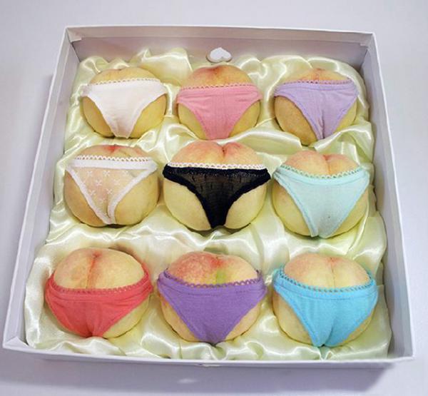 Tác phẩm trái đào giống hệt vòng ba của phụ nữ này là sự sáng tạo của một chủ cửa hàng bán hoa quả ở miền Đông Trung Quốc khi đã mặc nội y cho những trái đào, khiến chúng trở nên vô cùng ngộ nghĩnh.