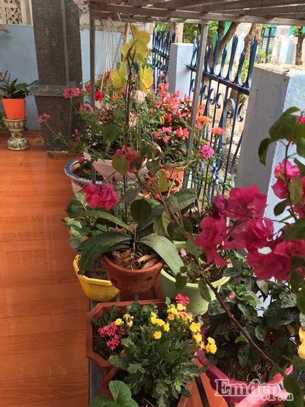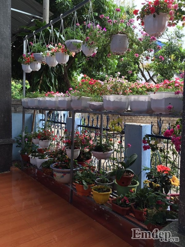 Khoảng hiên nhỏ nhưng luôn ngập tràn sắc hoa